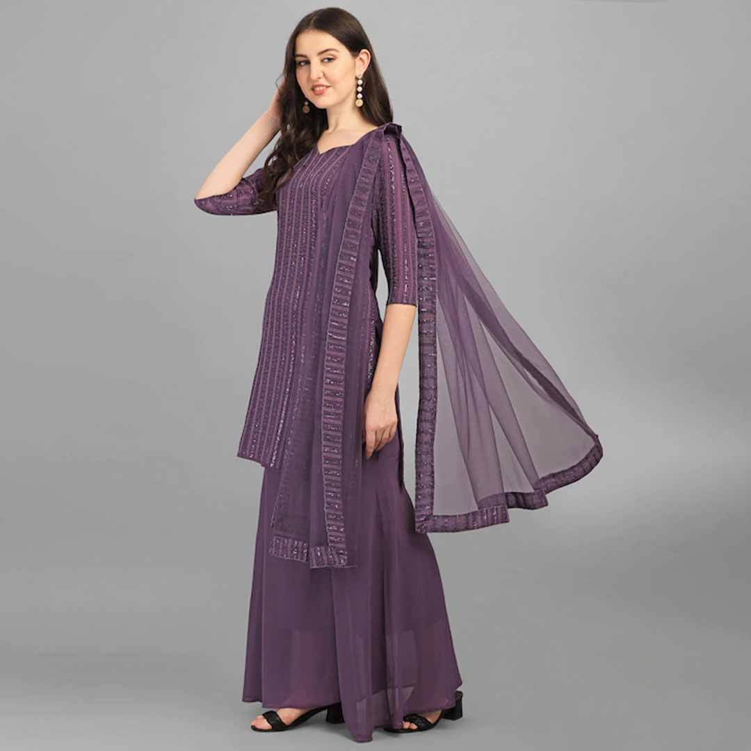 Kurta fabric: heavyFaux GeorgetteBottom fabric: heavyFaux GeorgetteInner Fabric :- Royal CrepeDupatta fabric: NetHand Wash