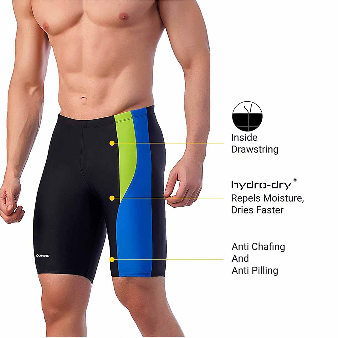 Offering 4-way stretch, these Men's Swimwear Jammers are made with High-Quality Poly Spandex, that offers expandability, excellent pull back & hold and is the best option for anyone who has an active lifestyle. A tight snug fit helps reduce water drag, and the 4-way stretch creates freedom of movement for all four swimming strokes. Designed, an Indian registered brand, retailing high quality athletic and activewear for over 35 years. We have over 100 wear and gear products for your fitness and active lifestyle needs. We are passionate about delivering hassle-free products, so you can focus on staying fit!