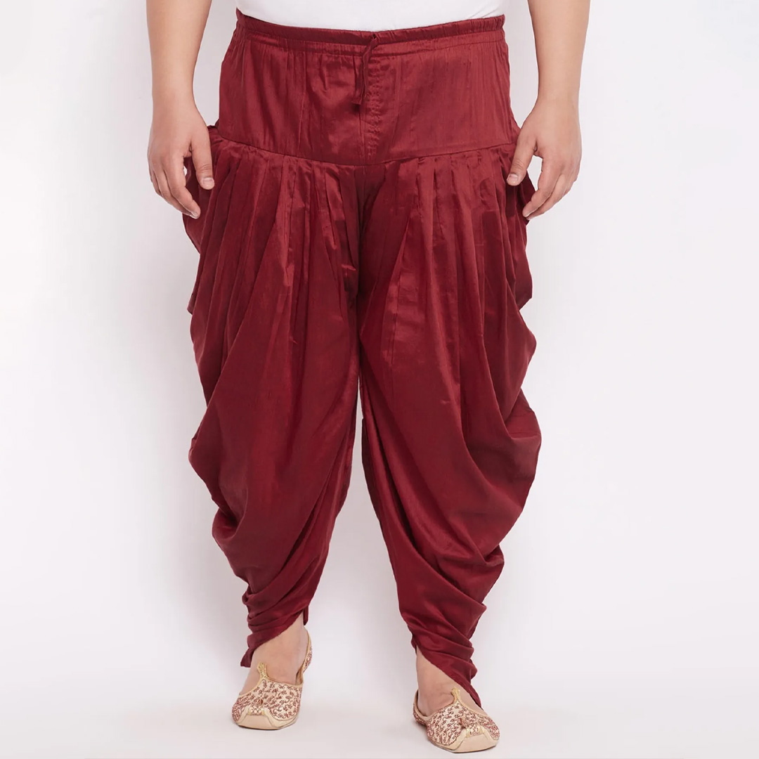 Fabric: silk blend | contents: a men's plus size cotton silk cowl pattern patiala style dhoti pant with uniform chunnar (drapes) for an amazing fit and fall.
