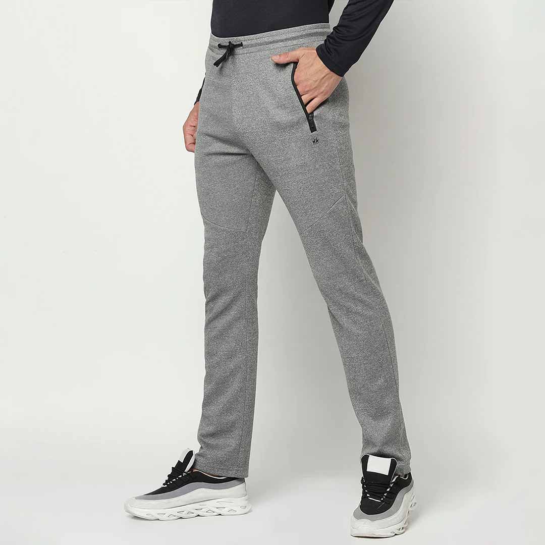 these tri-pocketed slim fit track pants are tailored in a straight cut and offer great ease of movement upon wear. perfect for long hours, these pair of grey tracks are a modern wardrobe essential.