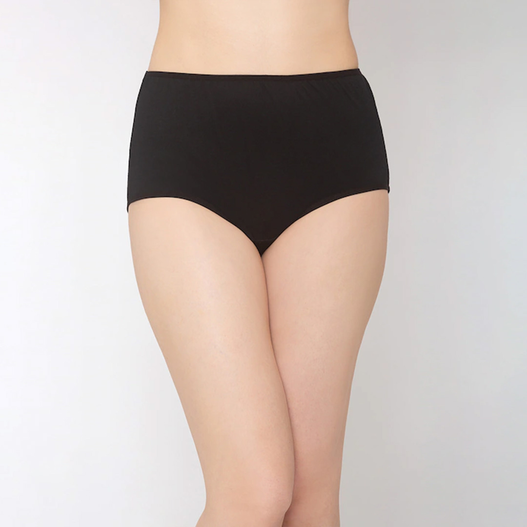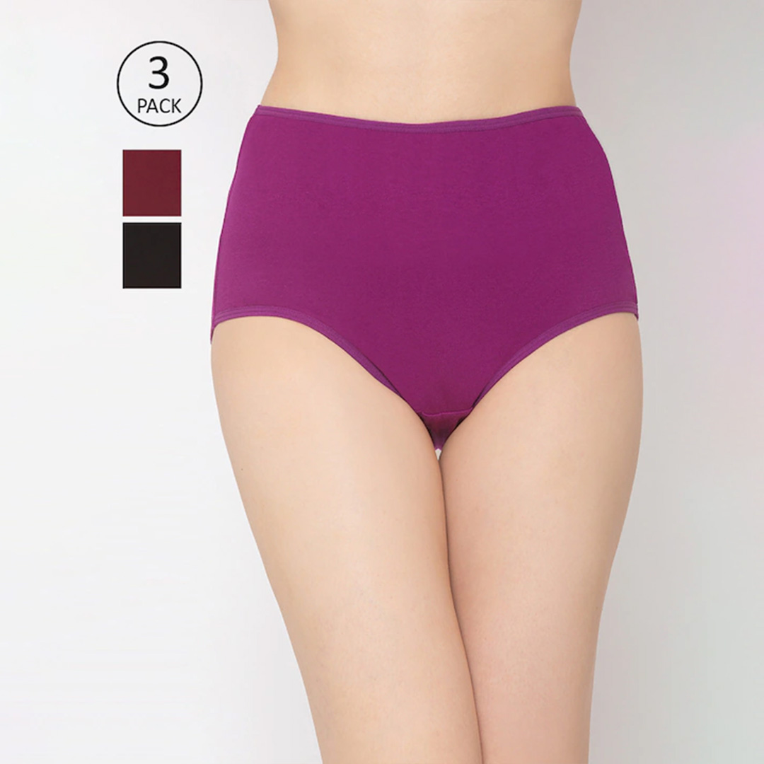 Pack of 3 solid high-rise maternity briefs in black, maroon and purple