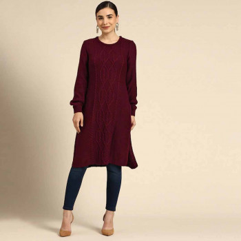 Women Maroon Cable Knit...