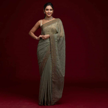 Lavender and gold-toned banarasi saree Woven design woven design saree with woven design border Has zari detail