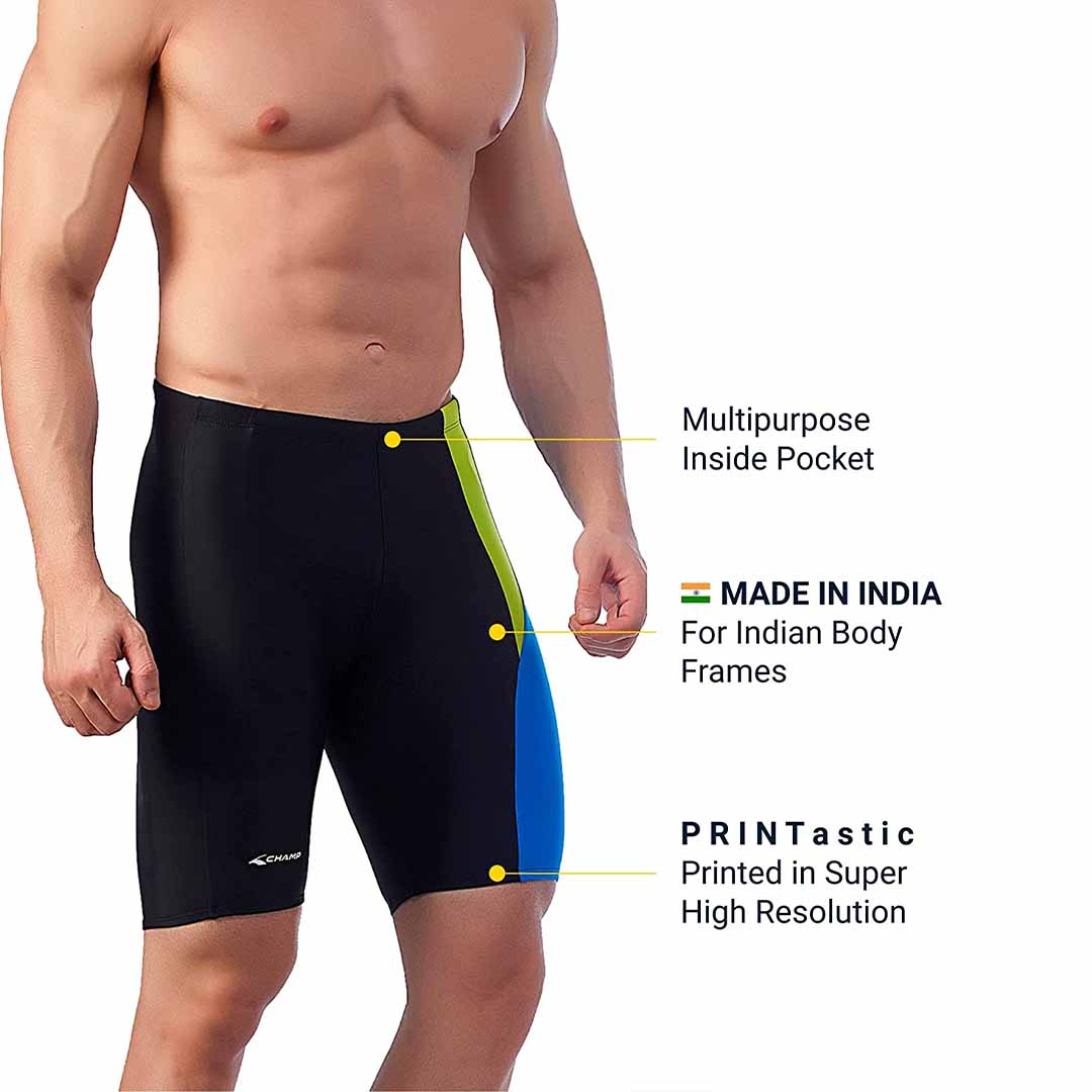 Offering 4-way stretch, these Men's Swimwear Jammers are made with High-Quality Poly Spandex, that offers expandability, excellent pull back & hold and is the best option for anyone who has an active lifestyle. A tight snug fit helps reduce water drag, and the 4-way stretch creates freedom of movement for all four swimming strokes. Designed, an Indian registered brand, retailing high quality athletic and activewear for over 35 years. We have over 100 wear and gear products for your fitness and active lifestyle needs. We are passionate about delivering hassle-free products, so you can focus on staying fit!