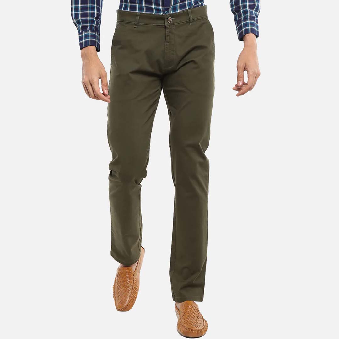 level up your wardrobe essentials with this stylish pair of slim fit trousers from arrow. the cotton spandex blend fabric of the trousers ensures an impeccable fit and comfort. match them with a solid t-shirt and your favourite pair of sneakers for a relaxed, casual look.