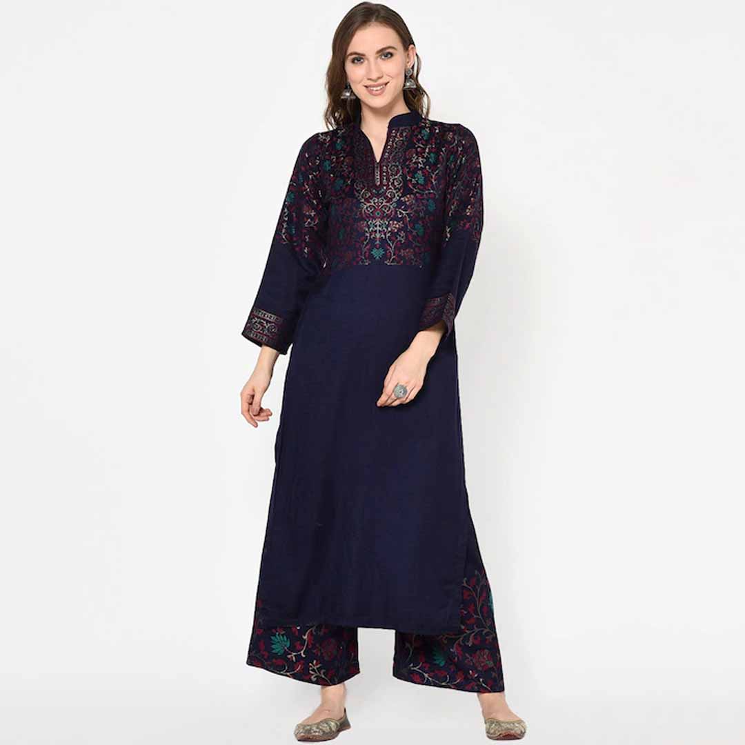Navy Blue woven design unstitched dress material
