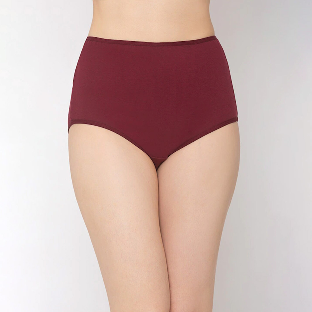 Pack of 3 solid high-rise maternity briefs in black, maroon and purple
